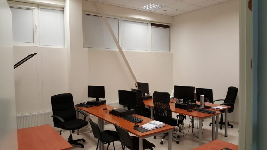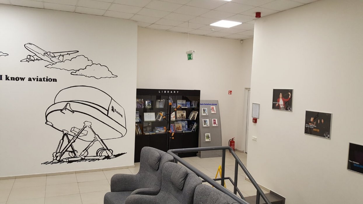 1329,5 kv. m., dviejų aukštų mokymo paskirties pastatas. Patalpos yra šalia Vilniaus tarptautinio oro uosto, aplink įsikūrusios įvairios aviacijos, logistikos, gamybos įmonės. Patalpos visiškai įrengtos, jose įsikūrusi pilotų mokymo įstaiga. Tinka mokymo ir administracinei veiklai Patalpos šiuo metu yra išnuomotos.